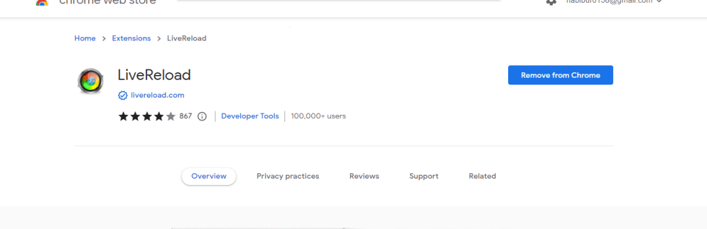 From this LiveReload extension page, you click on add to chrome button for adding this extension to your browser. After adding, you will find the LiveReload extension with your all-install extension. Then you can on or off your LiveRelaod extension from the extension option.